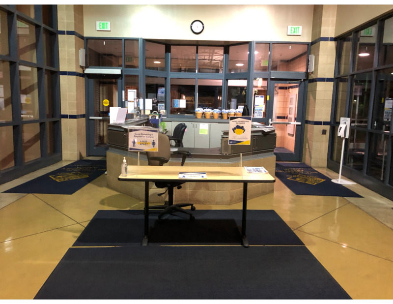 The photograph was taken in the AACC at St. Mary's University. Prior to the pandemic visitors would check-in using their ID cards. Now, patrons must create an appointment online and check-in at the only entrance, get their temperature taken, and leave once their hour appointment is up. This may seem like an inconvenience to some but it is a necessary procedure to ensure the spaces on campus are used safely.