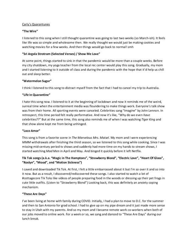 This is a playlist of songs I've listened to during quarantine and an explanation about each of them.