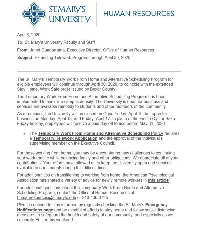 This email was sent out to the St. Mary’s University community on July 7, 2020, to explain the three different formats in which courses would be offered for the Fall 2020 semester. The university would offer three different formats for the then-upcoming semester.