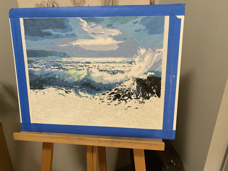 I chose this painting, because it is symbolic of one of the many hobbies I developed in order to get through this pandemic and social distancing through the past few months. Many people have picked up new hobbies in order to distract themselves or learn something that they have always wanted to do. I chose paint-by-numbers, because I have always loved painting, but I have never been very good at it. So, I chose the next best thing: paint-by-numbers. Everyone has different tastes and coping mechanisms. I thought it would be interesting to catalog the different hobbies that people have picked up in order to cope or distract themselves with from the pandemic