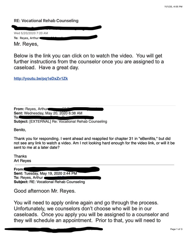 This is an email shared between me and a VA representative in the middle of 2020. Communication during the Covid-19 pandemic, and summer vacations was making things tough to complete. With the start of these events I was hoping for financial support for my summer II class.