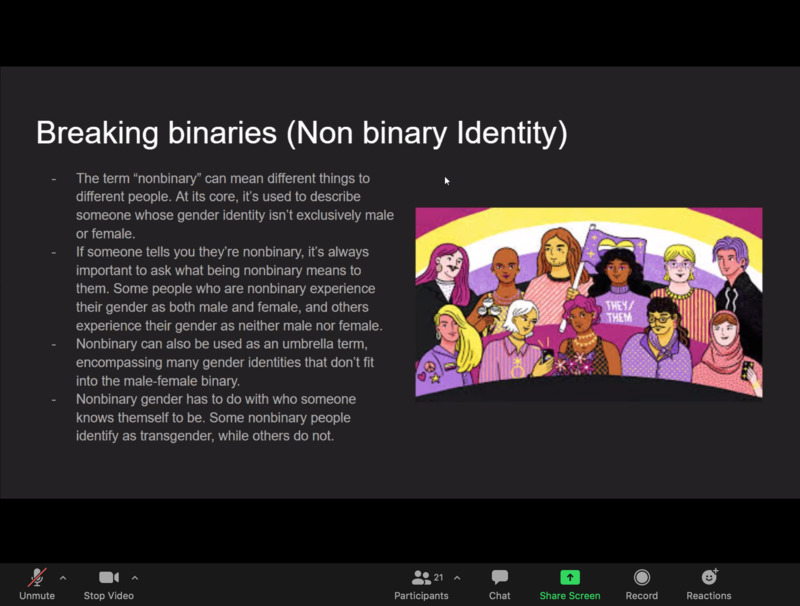 Living in a pandemic, navigating through the ins and outs of being (almost) 17, and self-reflecting on who I am during quarantine has shaped me into an entirely different person than who I was at the start of 2020. I remember sitting through a speaker presentation for a club I’m in during Transgender Awareness Week; In part because of LGBTQ+ education being moved into virtual spaces and in part because I feel the term now deeply resonates with me, I quickly took this screenshot of the slide defining the term non-binary. Before the pandemic, gender and how I viewed it was never a thought in my head because I often had no time to even reflect on what it meant to be a girl, to be a boy, or to simply exist beyond the binary. But I feel like if this prolonged period of isolation has taught me anything, it’s that gender and my relation to it will always remain an agglomeration of everything and nothing at all, and sometimes that’s perfectly normal.