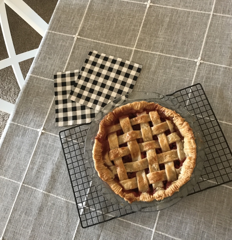 When he started getting the hang of napping, I suddenly had these open stretches of time in my day, which I was not used to. What to do to fill this time, especially in the midst of a pandemic and with a baby to boot? Like many people, I developed a baking hobby while my little one napped. Now I associated his nap time with the sticky feel of flour and butter on my hands as I kneaded dough for soda bread, the smell of buttery, sugary deliciousness coming from the oven as scones were baking. On my husband’s birthday, I produced my most time-consuming bake so far: a strawberry rhubarb pie. This one required some cooperation on the part of my little guy, whose giggles I heard as he batted at toys in his baby swing while I chopped and prepped the filling and made the pie crust. The finished product wasn’t necessarily perfect, but I was proud of it, and the memory of making it will always stick with me since it is a representative snapshot of that moment in time, a few months into a global pandemic with my young son.