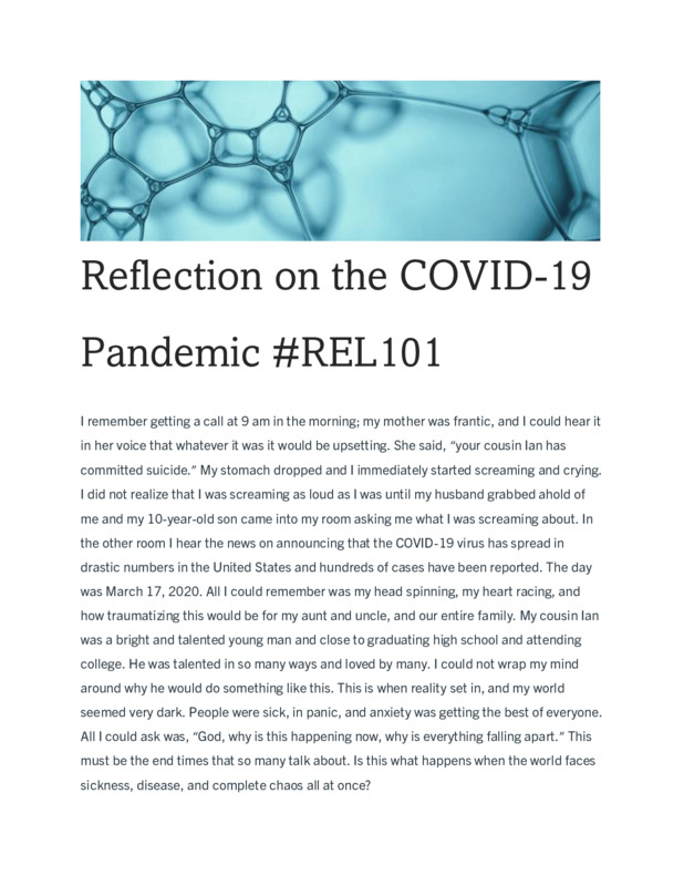 In this story I share how life changed for all people. How the pandemic changed lives and how lots of people experienced loss in significant ways. In this contribution I shared a reflection on my experience at the start of the pandemic and how life is post the COVID-19 pandemic of 2020.