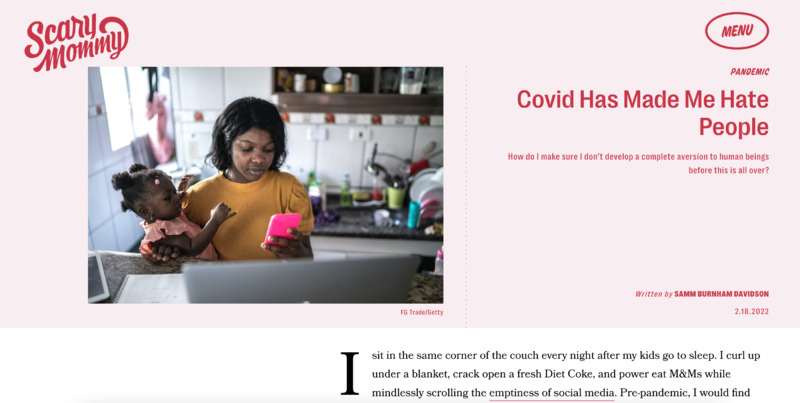 This is a news story from Scary Mommy by Samm Burnham Davidson. This is a story written from the point-of-view of someone who has experienced some of the negative social effects of COVID. She says that before the pandemic, social media posts that annoyed her would only be mildly so, but with COVID and lockdowns, she started to feel senses of inadequacy compared to other parents. She thought that she needed to overhaul her entire wardrobe, her son should get ice skates, and that her four-year-old needs to learn to ride a two-wheeler bike. She has three young kids, and a 2020 baby. She describes feeling very isolated and the exposure to social media made her feel like she had to measure up to some imaginary standard of parenting, like trying to forgo all plastic toys for Christmas to help the environment. This is a good story for the perspective of mothers with many kids to take care of, resulting in even more isolation than what would happen for adults with no kids, as kids caused her to stay home more even before COVID.