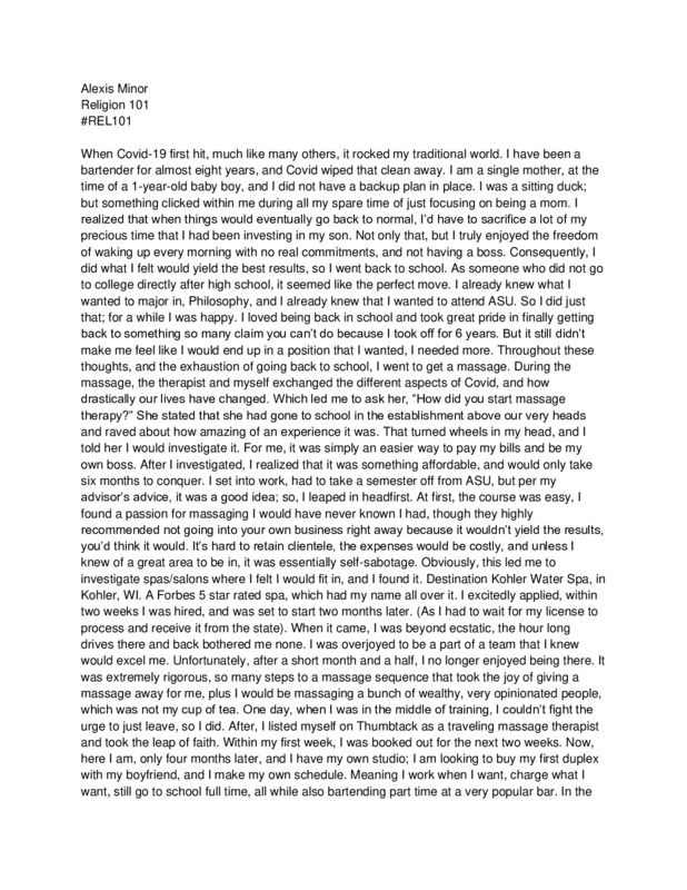 I am submitting this for my Rel 101: Religion, Culture, and Public Life course.