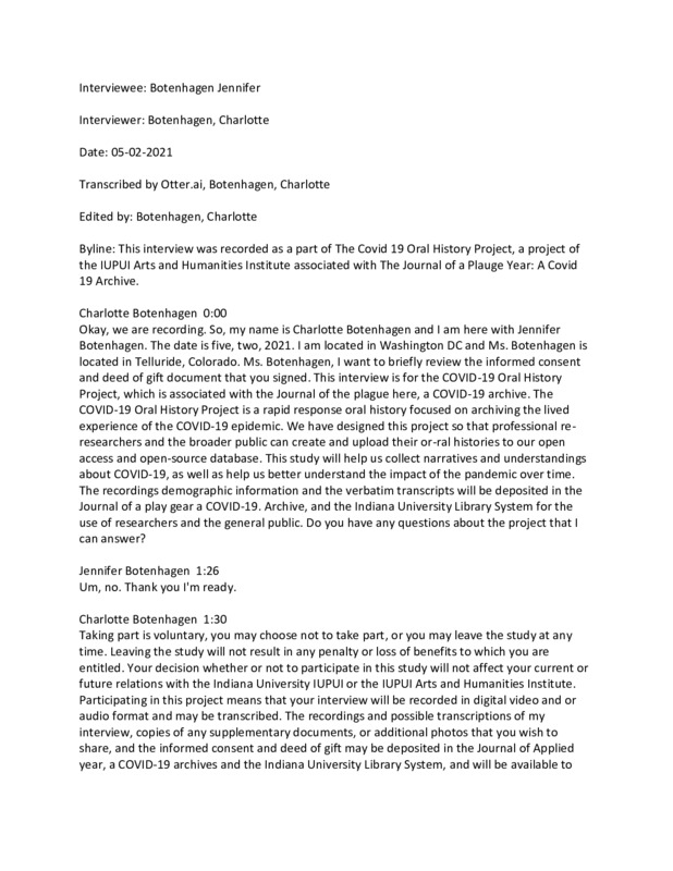 This was an interview from Jennifer Botenhagen who is a preschool teacher living in a tiny mountain town. This interview details her experience adapting to teaching during the COVID-19 pandemic.