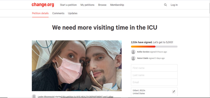 I’m in a mom group on Facebook where this was shared. The woman who began the petition outlines her struggle with her husband’s traumatic workplace injury and how their lives and his recovery is impacted by the ICU’s COVID rules. There are also many comments by petition signers who believe COVID restrictions do more harm than good.