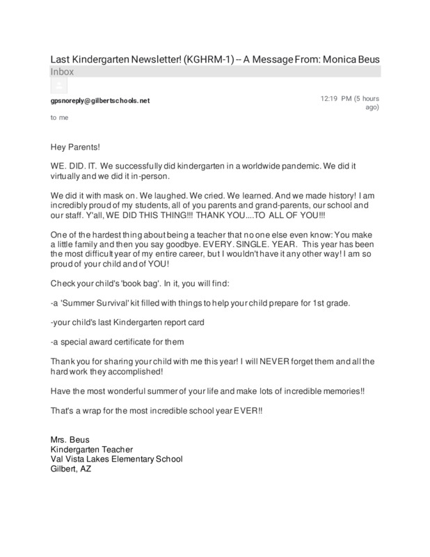 I wanted to share her last newsletter in hopes that it reflects an ounce of how difficult this school year was for teachers and how resilient children were.