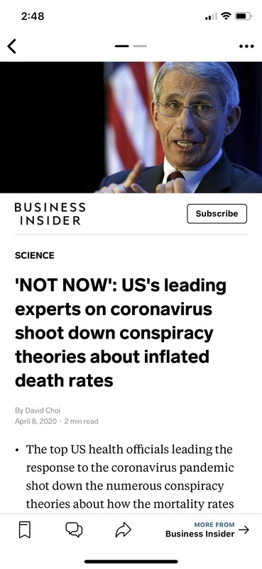 This project aims to document all of the different conspiracies and their growth and treatment by the media throughout the pandemic. This is the headline of an article acknowledging the existence of conspiracies that have and will continue to start arising due to the pandemic.