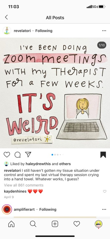The illustrator depicts the 'weirdness' and discomforts of doing therapy sessions over the screen using Zoom. The pandemic has forced everything online and mental health is at its most volatile for many people around the world.