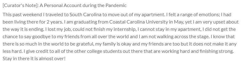 Account of the Covid-19 pandemic from a 19 year old college freshman