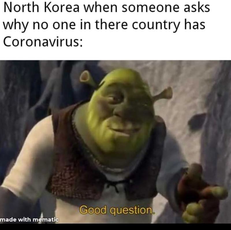 This image comedically explores how in North Korea there was a man who tested positive for Corona Virus and the leader of North Korea Ordered him to be shot and he was killed. This is a more detached form of humor because the post is American, but we truly only know what North Korea wants us to know about them.