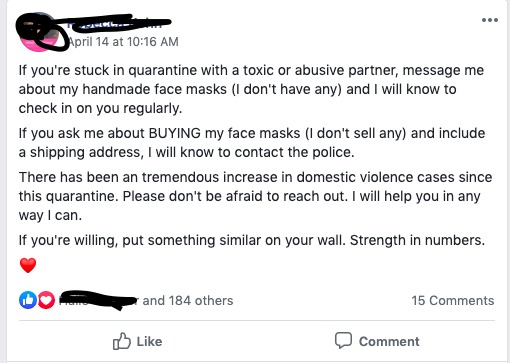 As the stay at home order across Illinois continues to extend as we reach the second month in quarantine, many have been trapped in unsafe situations with those they share a residence with. Domestic violence works from home, people have lost their small escape for the day. Neighborhoods in Chicago and across the city have been helping others get out of stressful situations by providing discreet messaging templates that often provide the survivor to offer their address so police could be called or for the survivor to be picked up. Recently, Chicago mayor, Lorilightfoot has also launched her plan to help by training local domestic violence hotline phone operators to give out promo codes so survivors can be driven to a safe location by a rideshare driver for free. #DePaulHST391