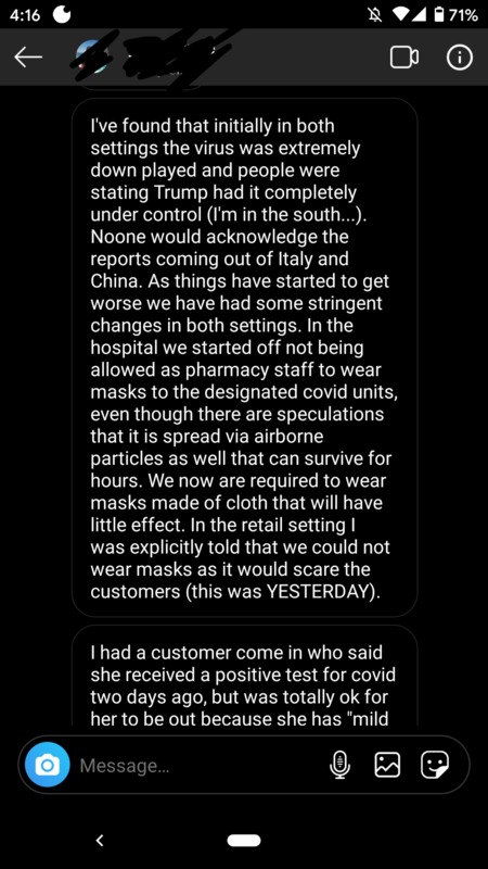 My friend is a pharmacy student in Nashville and was shocked at how students were being treated by employers and professors. She was also shocked by the news and information being presented to clients. This exchange explains why so much disinformation spread as this started. This is Part 1 of our conversation. #NortheasternJOTPY