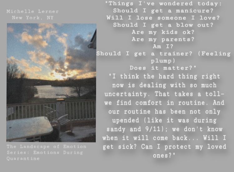 The Landscape of Emotion Series: Under Quarantine is a series illustrating the diverse experiences of mental health and feelings throughout quarantine. Michelle Lerner, a family friend, compares her current emotions and experience to previous crises and personal accidents.