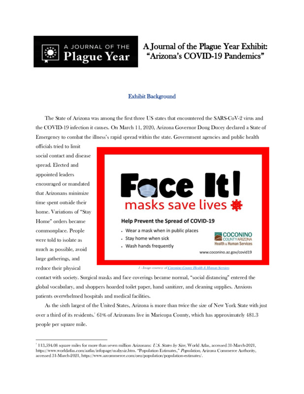 While working as a curatorial intern on ASU's 'A Journal of the Plague Year' COVID-19 archive, I created this exhibit on the pandemic experience within the state.