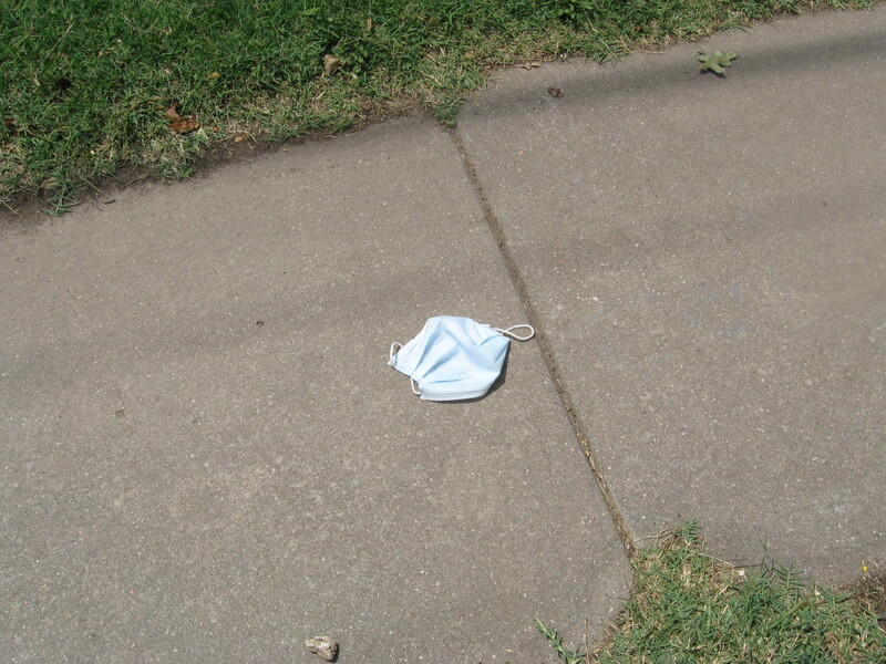 Found on the sidewalk along west Wichita, Kansas's 13th Street, this discarded mask reflects two dueling realities that have come to define the larger COVID-19 experience. First, such a sight is now rather commonplace across many communities, thereby revealing that masks have become such an important mitigation measure and common clothing accessory in both the US and the world that they are found in use and disuse as easily as a soda can or food wrapper. It is also emblematic of the contrary attitudes still held by many people, especially in more conservative regions of the United States, with a still significant portion of the population who, in the face of surging cases and fatalities, continue to challenge the need for masks and distancing by carrying on as if COVID-19 were a relic of the past.