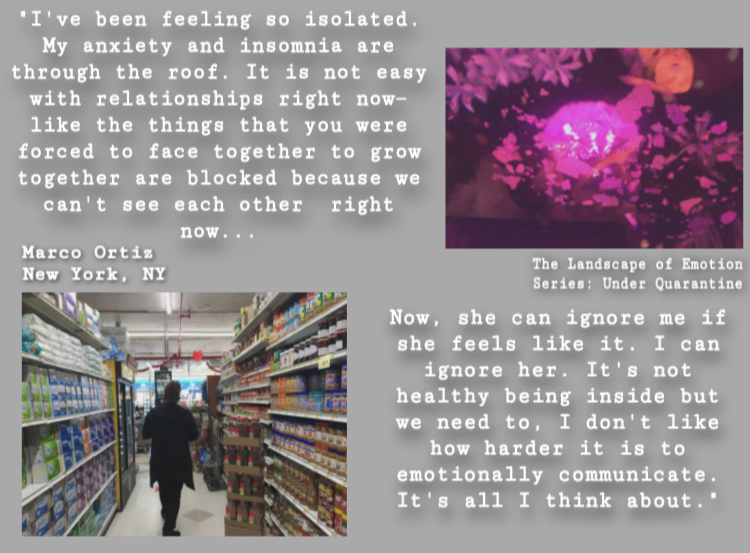 The Landscape of Emotion Series: Under Quarantine is a series illustrating the diverse experiences of mental health and feelings throughout quarantine. My nephew, Marco Ortiz, focuses on the isolation and lack of communication he feels quarantine brought to his relationships.