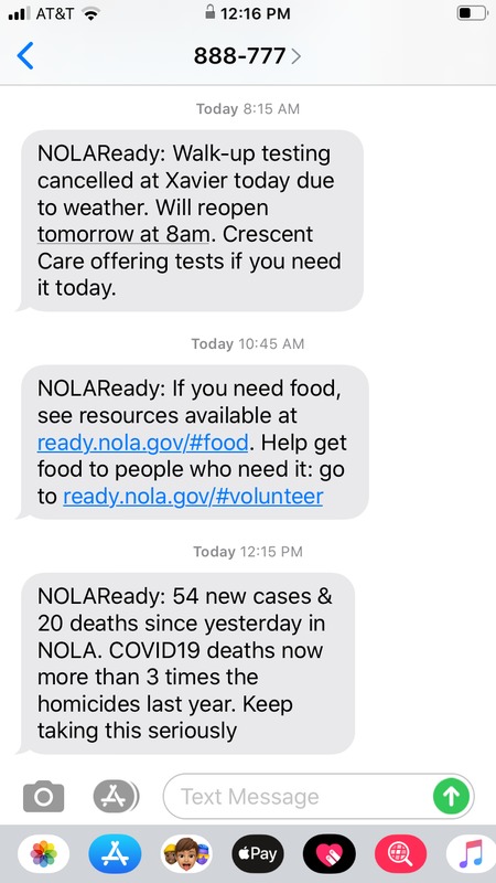 When I realized I was going to be quarantined in New Orleans for the foreseeable future, I signed up for texts from the mayor. These three, sent within hours of one another, suggested an evocative sketch of the landscape that is New Orleans, encapsulating both the threats we face and the ways we respond to them. The first text was about the morning's severe weather (often a threat in New Orleans), which disrupted Covid testing. The next was about how we can help those facing the threat of food insecurity. The last compared the death rate from Covid to the city's homicide rate (which tells you as much about violence in the city as it does about the pandemic).