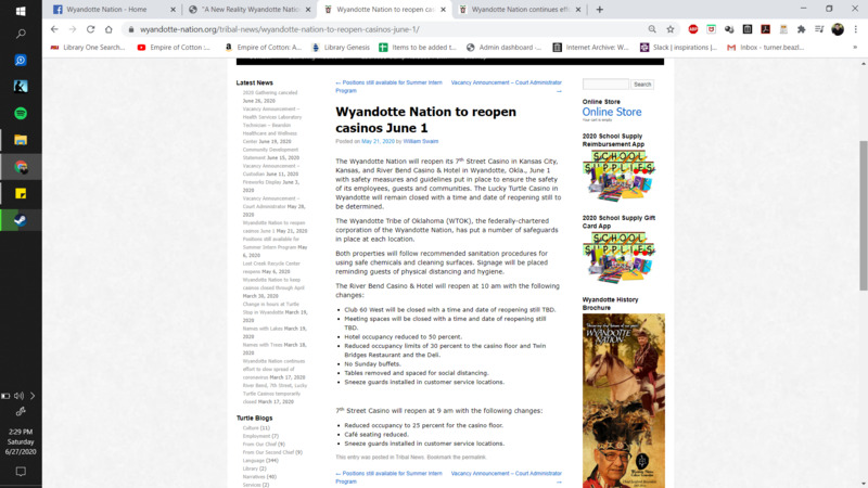 "At the Wyandotte Nation, we have taken across-the-board action to dull the impact of the virus and keep Wyandotte citizens, employees and our customers safe."