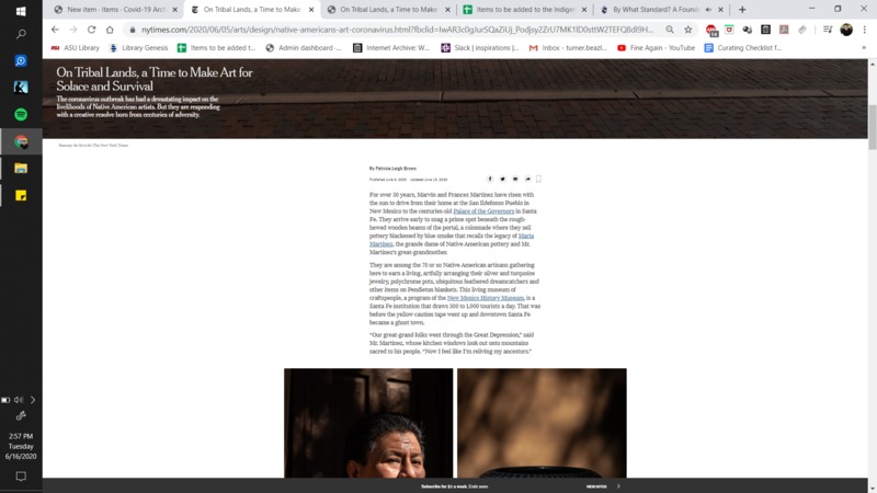 “As the pandemic wreaks havoc on millions of lives, it has had a devastating impact on the livelihoods of Native American artists and artisans, who are collectively responding with a creative resolve born from centuries of adversity.”