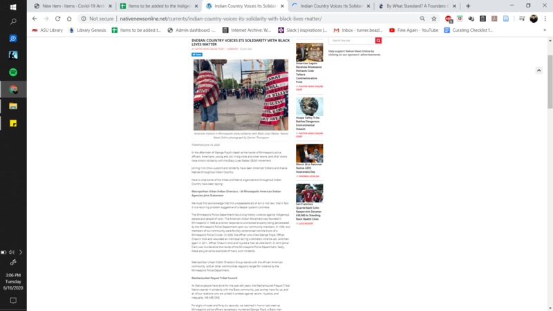 “In the aftermath of George Floyd’s death at the hands of Minneapolis police officers, Americans, young and old, in big cities and small towns, and of all colors have shown solidarity with the Black Lives Matter (BLM) movement. Joining in to show support and solidarity have been American Indians and Alaska Natives throughout Indian Country.”