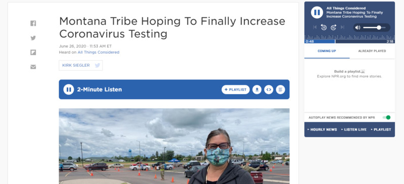 Excerpt from article: More than three months into the pandemic, it can still be tough to get a coronavirus test, especially if you live in some of the country's more remote tribal communities.