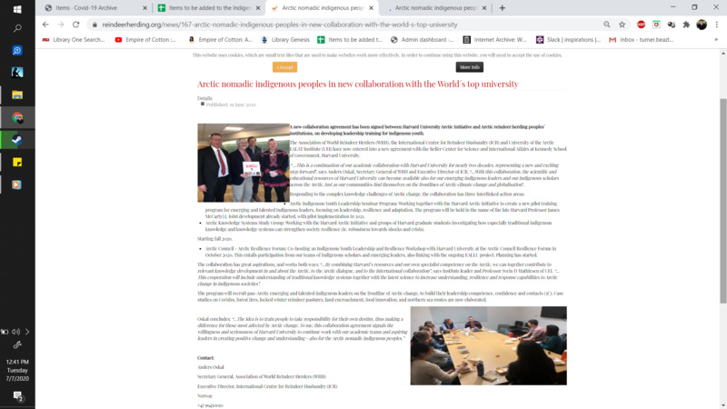 "his is a continuation of our academic collaboration with Harvard University for nearly two decades, representing a new and exciting step forward”, says Anders Oskal, Secretary General of WRH and Executive Director of ICR. “…With this collaboration, the scientific and educational resources of Harvard University can become available also for our emerging indigenous leaders and our indigenous scholars across the Arctic, just as our communities find themselves on the frontlines of Arctic climate change and globalisation”."