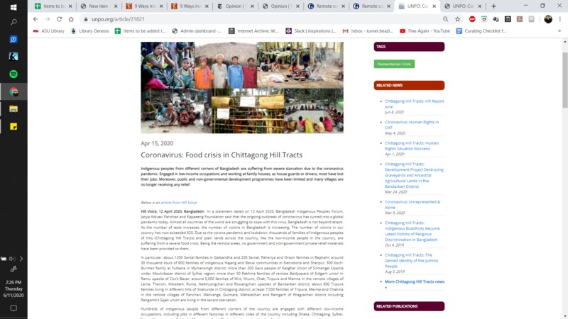 “Indigenous peoples from different corners of Bangladesh are suffering from severe starvation due to the coronavirus pandemic. Engaged in low-income occupations and working at family houses, as house guards or drivers, most have lost their jobs. Moreover, public and non-governmental development programmes have been limited and many villages are no longer receiving any relief.”