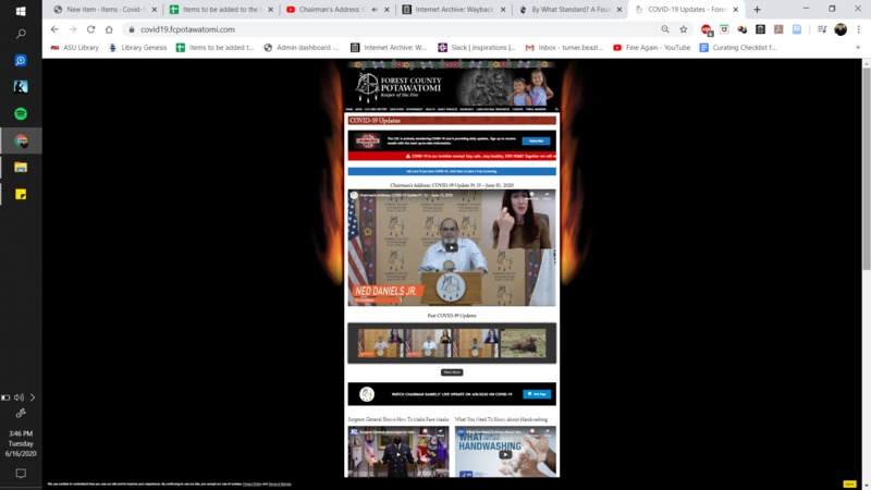 “Despite tremendous efforts and sacrifices made by many people in our community, there now is one confirmed coronavirus case involving a resident of Lac du Flambeau… We are in the process of testing people who came in close contact with the person who tested positive. So far, the rapid testing has been negative and they are asymptomatic or not showing symptoms of being sick. All close contacts will be in isolation for 14 days, following the protocols and monitoring for symptoms.”
