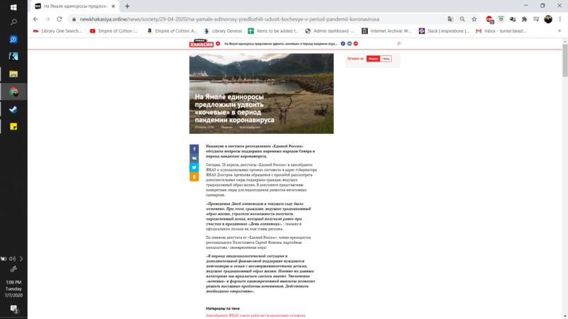 "local support for United Russia discussed issues of support for the indigenous peoples of the North during the coronavirus pandemic.""