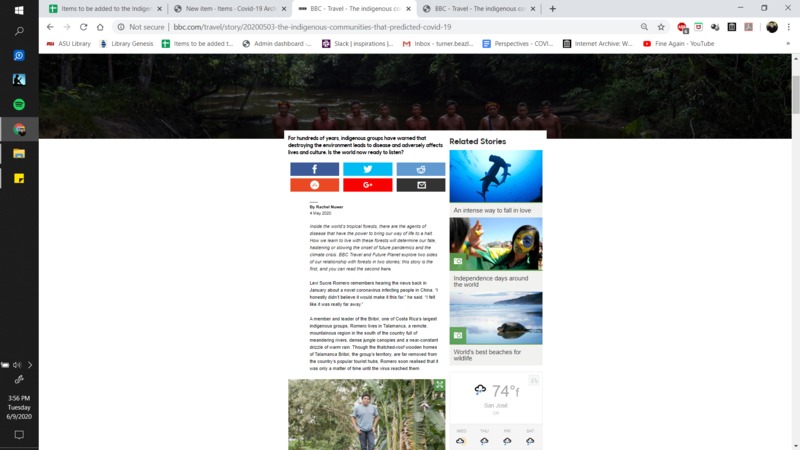 "For hundreds of years, indigenous groups have warned that destroying the environment leads to disease and adversely affects lives and culture. Is the world now ready to listen?"