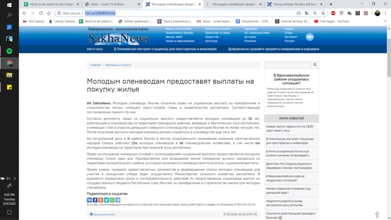 "Young reindeer herders in Yakutia received the right to social benefits for the purchase and construction of housing, the press service of the head and government of the republic said."
