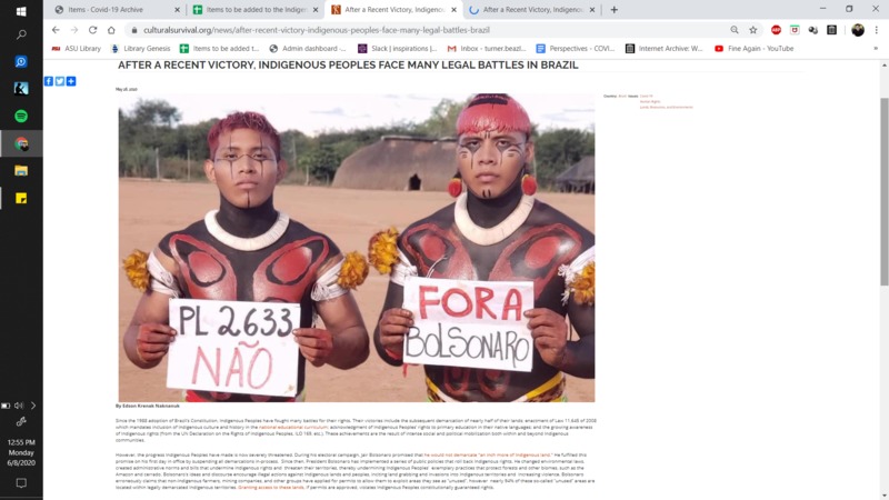 "Their victories include the subsequent demarcation of nearly half of their lands; enactment of Law 11,645 of 2008 which mandates inclusion of Indigenous culture and history in the national educational curriculum; acknowledgment of Indigenous Peoples’ rights to primary education in their native languages; and the growing awareness of Indigenous rights "
