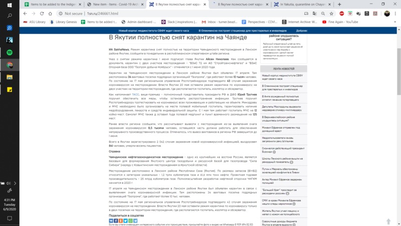 "Quarantine at the Chayandinskoye field in the Lena district of Yakutia was announced on April 17. There are 34 shift camps of Gazprom contractors, where more than 10 thousand people work. As of May 17, the regional department of Rospotrebnadzor confirmed 43 cases of coronavirus infection in the field. On May 20, the authorities of Yakutia left the coronavirus quarantine regime at two sites in the field, where the hospital, isolation ward and observatory are located."