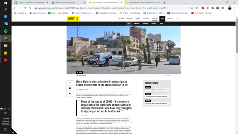 "Fears of the spread of COVID-19 in southern Libya expose the vulnerable circumstances of minority communities who have long struggled to enjoy equal access to health care."