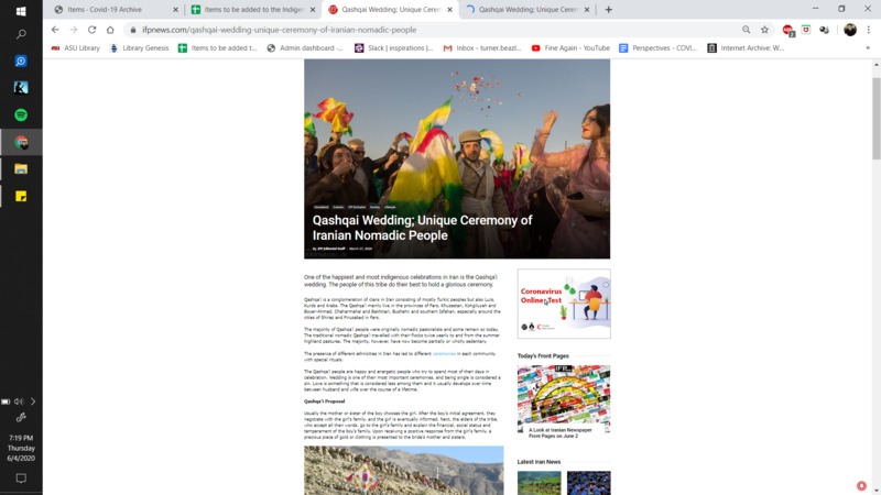 "Nomadic pastoralists in Iran play an important role in national food security and sovereignty.1 Since the arrival of COVID-19, they have been deeply concerned about the impact that the pandemic is likely to have on them. Their recently established national platform, the Union of Indigenous Nomadic Tribes of Iran (UNINOMAD),2 is taking action. UNINOMAD outlined its members’ concerns and proposed solutions in a letter sent to key national authorities on 10 March. We will outline the main points of the letter and reflect on what the overall situation might mean for nomadic pastoralism in Iran."