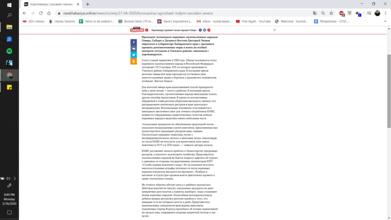 "Grigory Ledkov, President of the Association of Indigenous Minorities of the North, Siberia and the Far East, appealed to the governor of the Khabarovsk Territory with a call to take additional measures and take special control of the situation in the Ulchi region related to coronavirus." #IndigenousStories