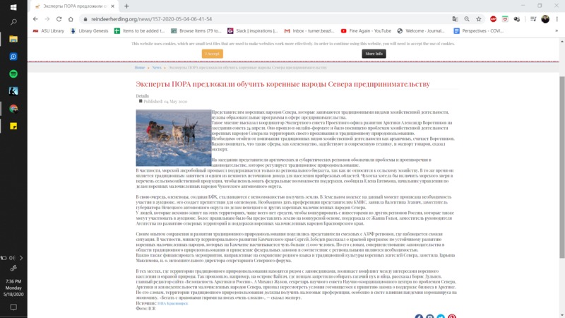 “Representatives of the indigenous peoples of the North who are engaged in traditional types of economic activity need educational programs in the field of entrepreneurship…It was held in an online format and was devoted to the problems of the economic activities of the indigenous peoples of the North in their territories of residence and traditional nature management. It is necessary to move away from understanding traditional forms of economic activity as archaic…It is important to understand that areas such as reindeer herding use both modern technology and the export of goods, the expert said. At the meeting, representatives of the Arctic and subarctic regions identified problems and contradictions in the legislation that regulates traditional nature management…People who traditionally live in these territories most often do not have the means to compete with investors from other regions of Russia, who can also participate in the auction. It would be more appropriate to provide land on a competitive basis, supported by Zhanna Holm, deputy head of the Agency for the Development of the Northern Territories and Support of Indigenous Minorities of the Krasnoyarsk Territory…” #IndigenousStories