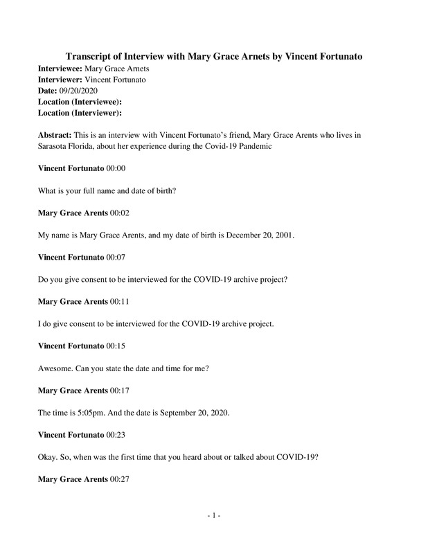 This is an interview of my friend Grace who lives in Sarasota Florida, and her experience during the Covid-19 Pandemic