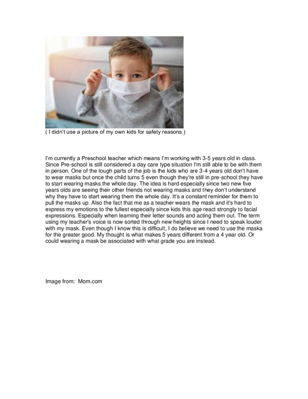 My story talks about the struggles of working with young children in a Pandemic. This was important to me for people to understand how the work enrollment is when Children are involved.