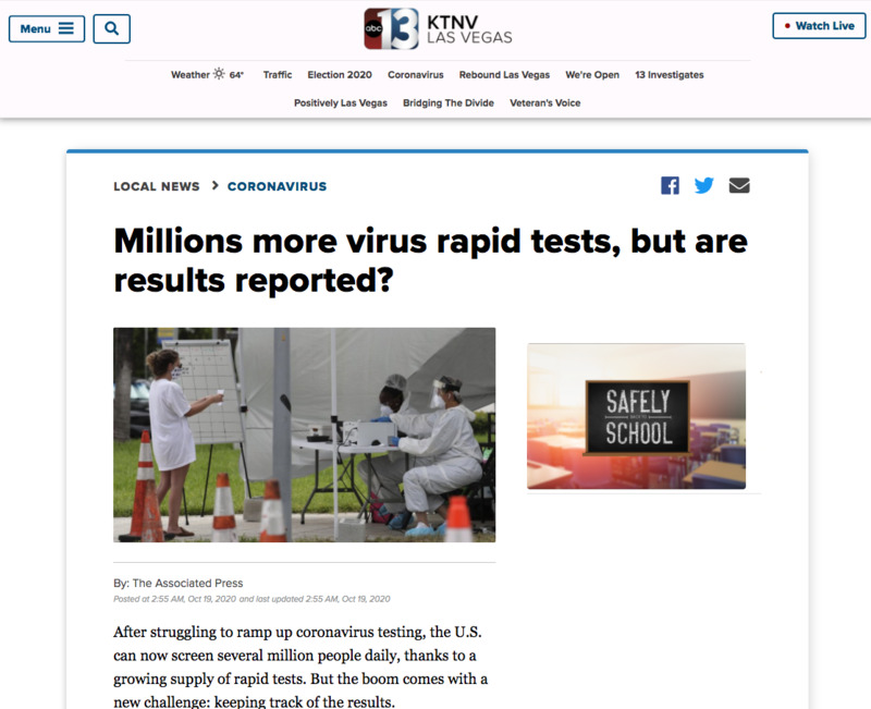 The Associated Press. (2020, October 19). Millions more virus rapid tests, but are results
