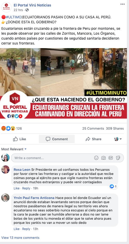 Ecuatorianos están cruzando a pie la frontera de Peru por montones, se les puede observar por las calles de Zorritos, Mancora, Los Órganos, cuando ambos países por cuestiones de seguridad sanitaria decidieron cerrar sus fronteras.