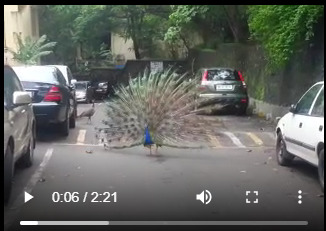 Dancing peacock in the middle of a street