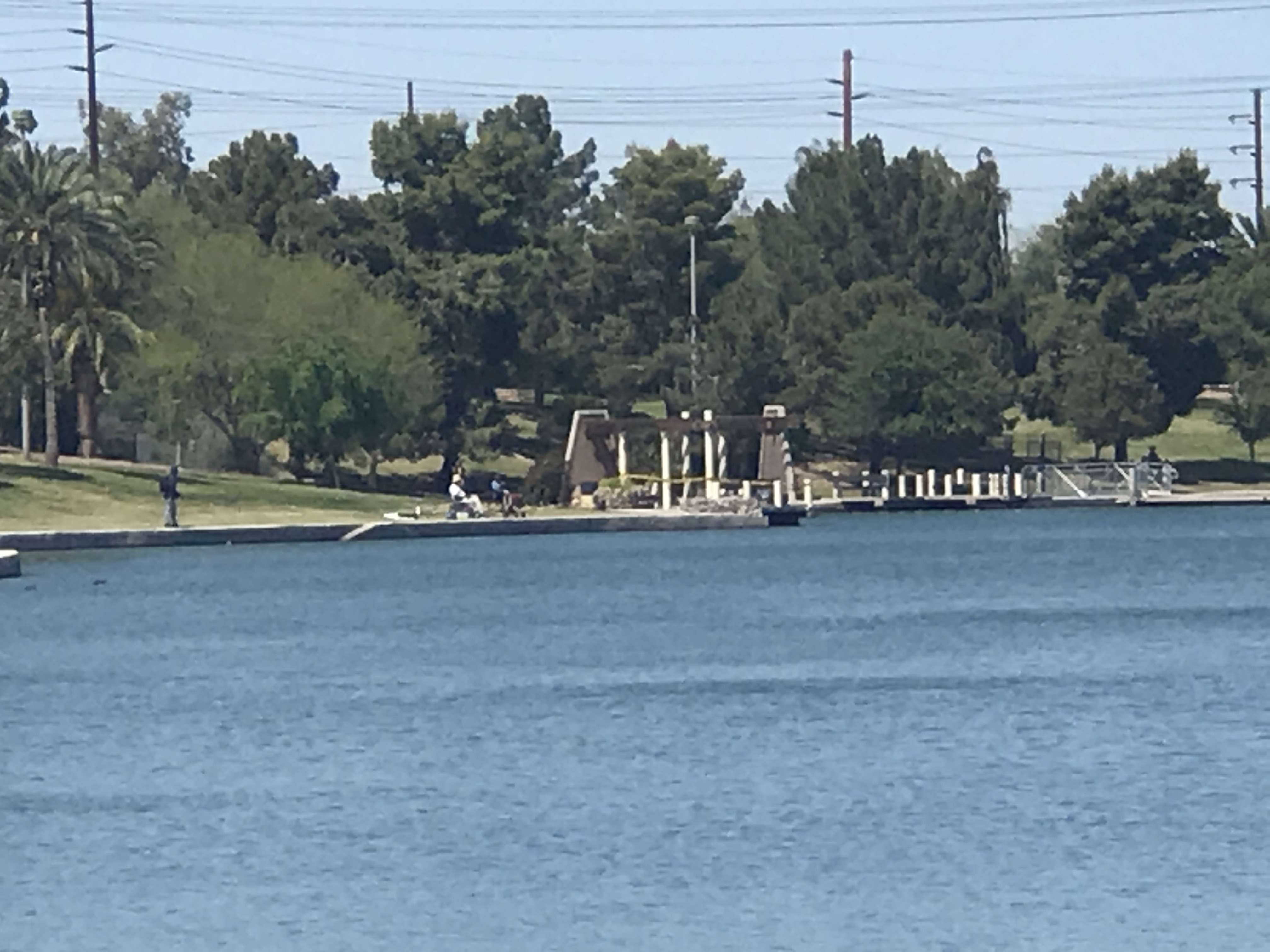 Fishing continues at the lake at Kiwanis Park in Tempe, Arizona about midday on Monday, April 6, 2020.