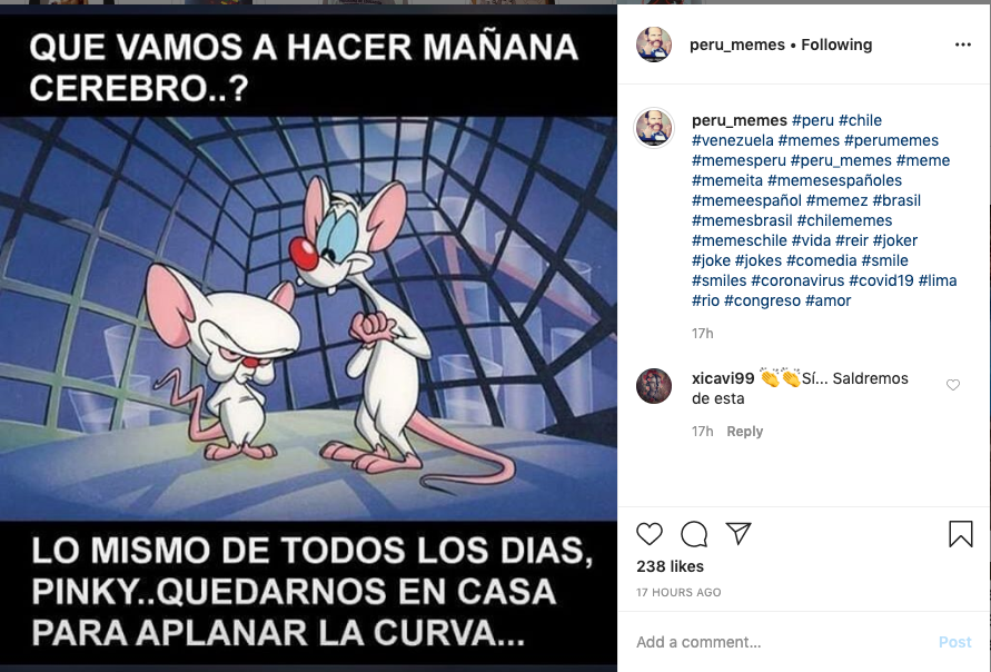 Meme playing with the children's cartoon Pinky and the Brain. What are we going to do tomorrow, Brain? A: The same thing we do every day Pinky, stay at home and try to flatten the curve.