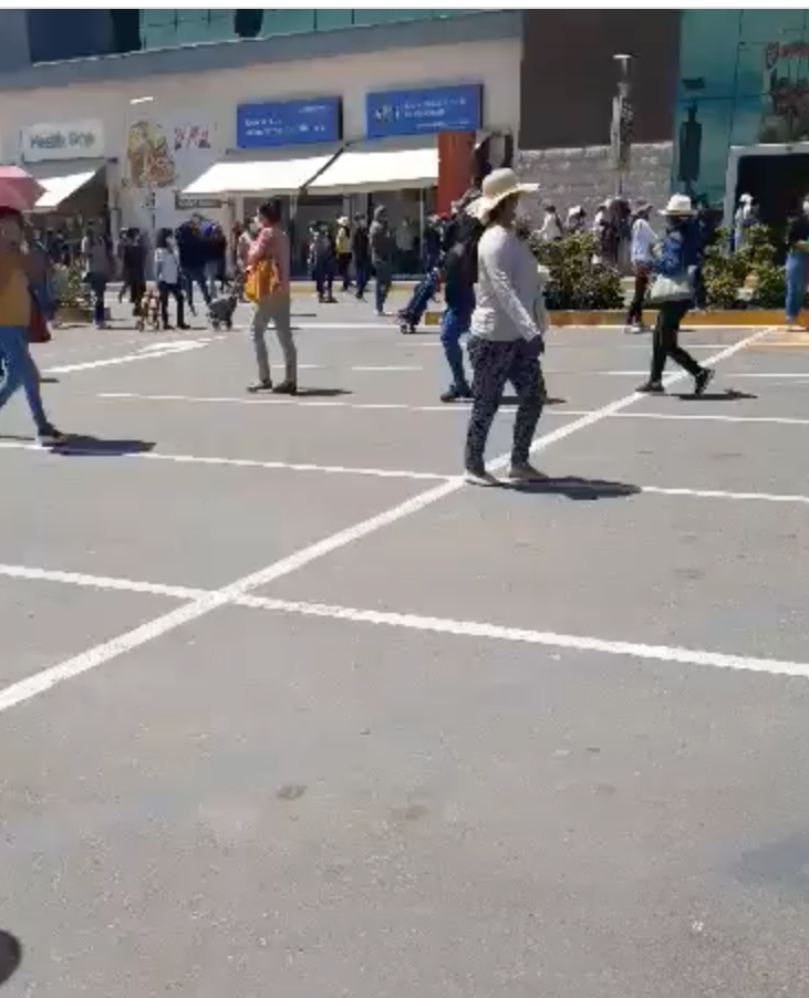 Peru is controlling the movement of men and women by allowing women to go out certain days, and women to go out other day to shop. This video shows women lined up and spaced apart to enter the Tottus supermarket in Arequipa, Peru.