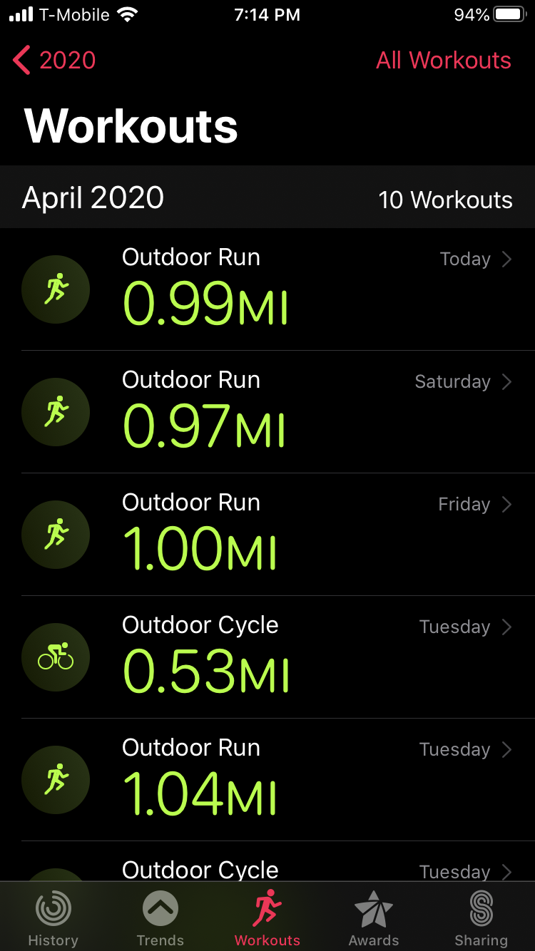 Really the only time I leave my apartment lately. My daily runs. Oh, and walking the dog.