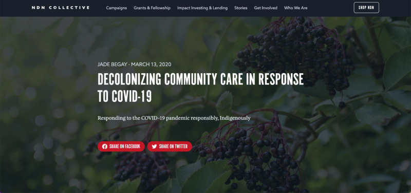 Recommendations for Indigenous people to stay grounded during the pandemic, including a call to connect with traditional medicines and knowledge and build community.